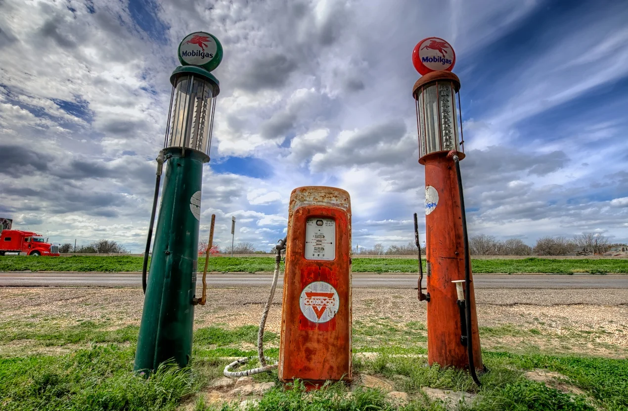 But on this day I was just loving those clouds so I turned around to shoot them behind the gas pumps. And then a red truck drove by…