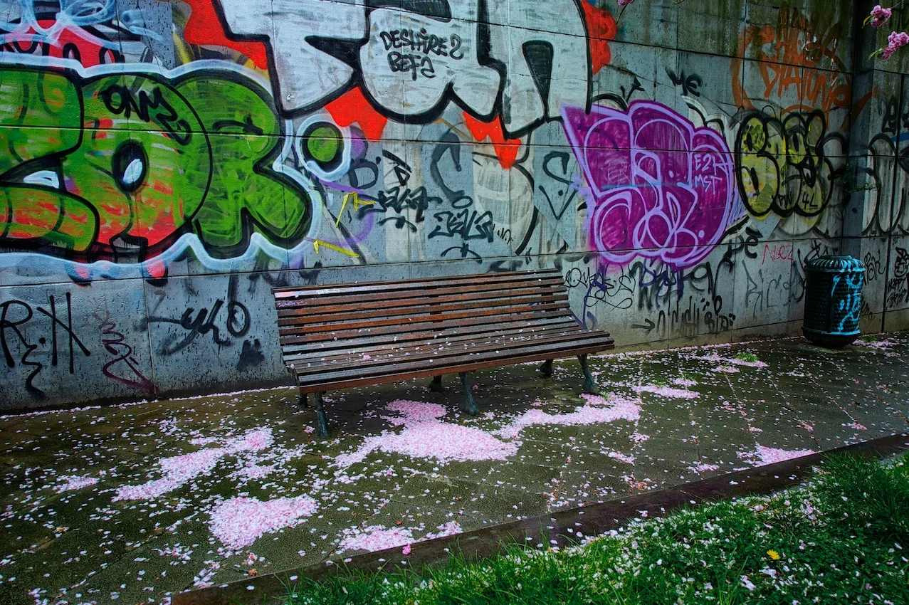 cherry blossoms and graffiti - interesting combo but it works for me!