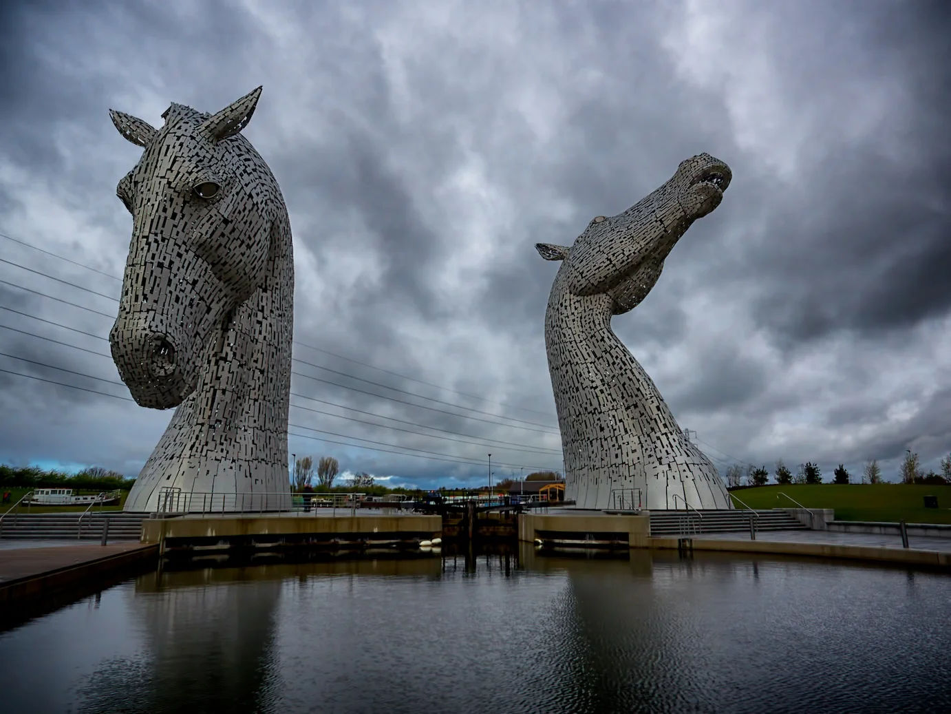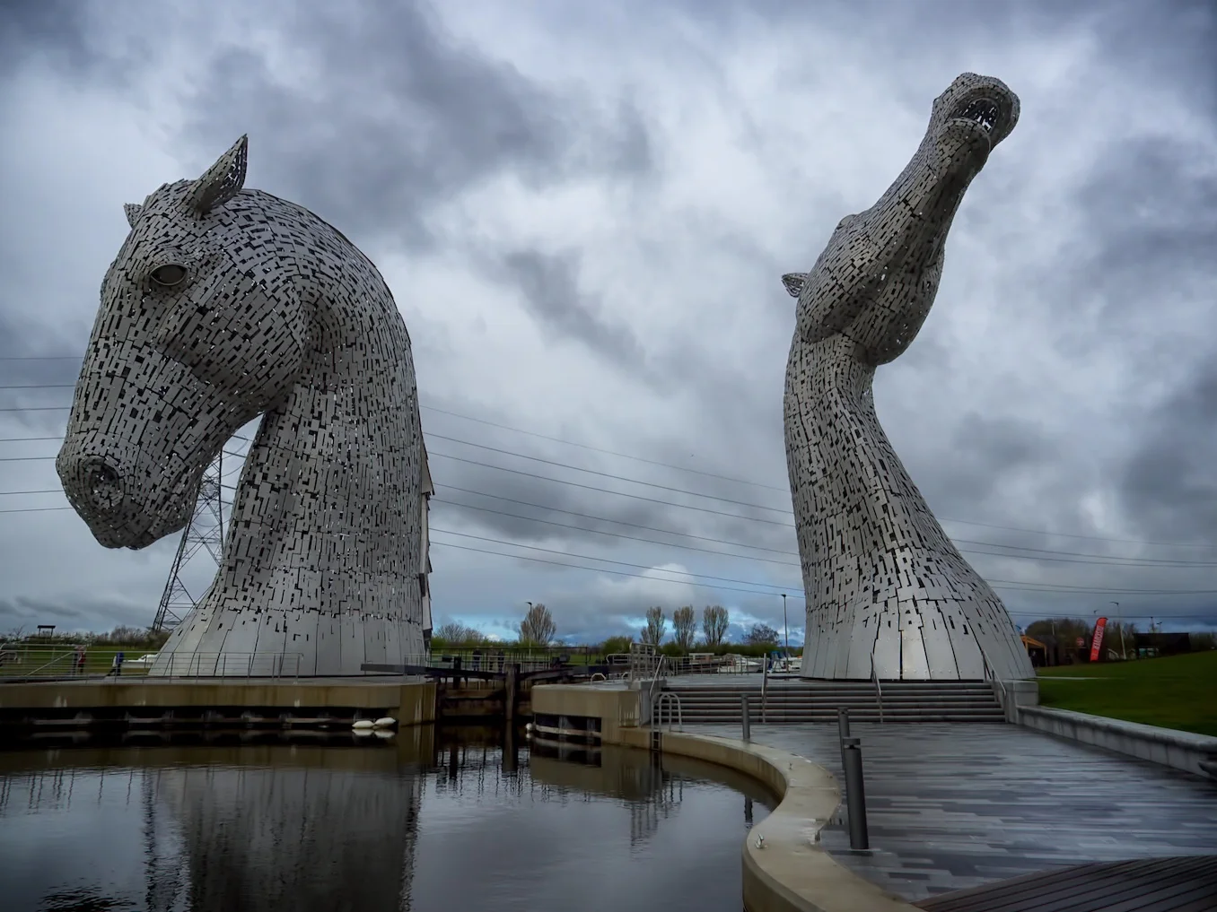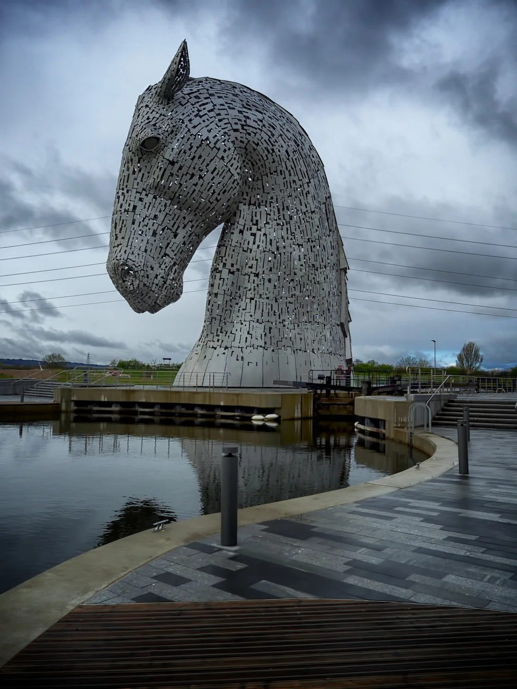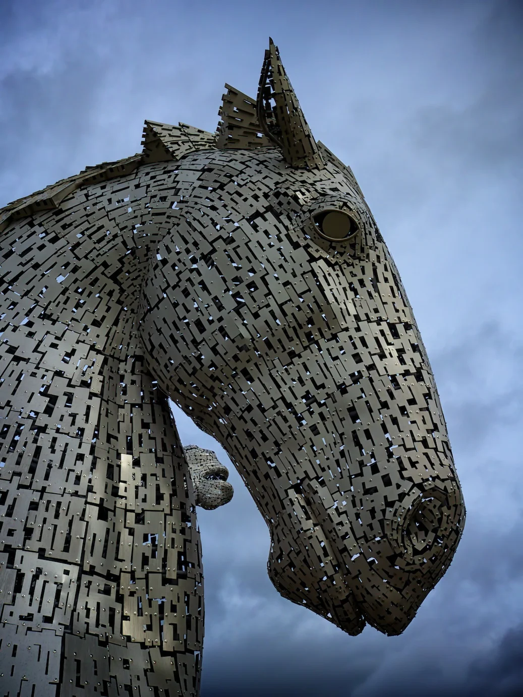A little more from Wikipedia: The Kelpies name reflected the mythological transforming beasts possessing the strength and endurance of 10 horses; a quality that is analogous with the transformational change and endurance of Scotland's inland waterways. The Kelpies represent the lineage of the heavy horse of Scottish industry and economy, pulling the wagons, ploughs, barges and coalships that shaped the geographical layout of the Falkirk area.