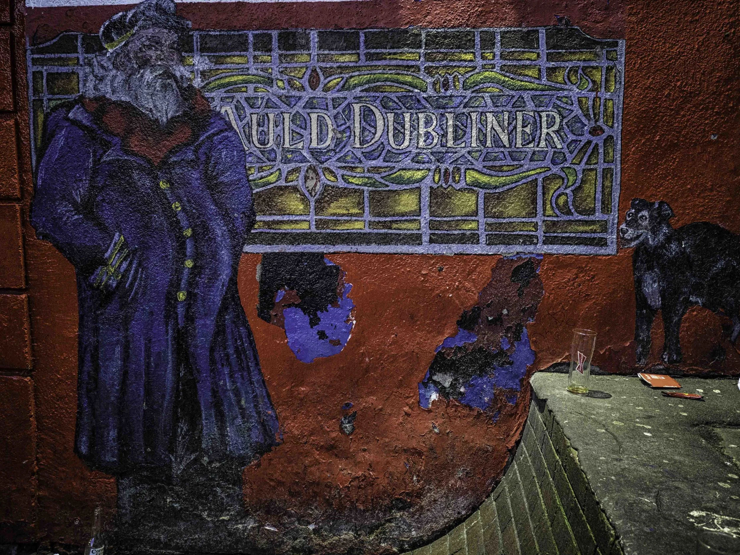 the mural on the side of the Auld dubliner pub in the temple bar district