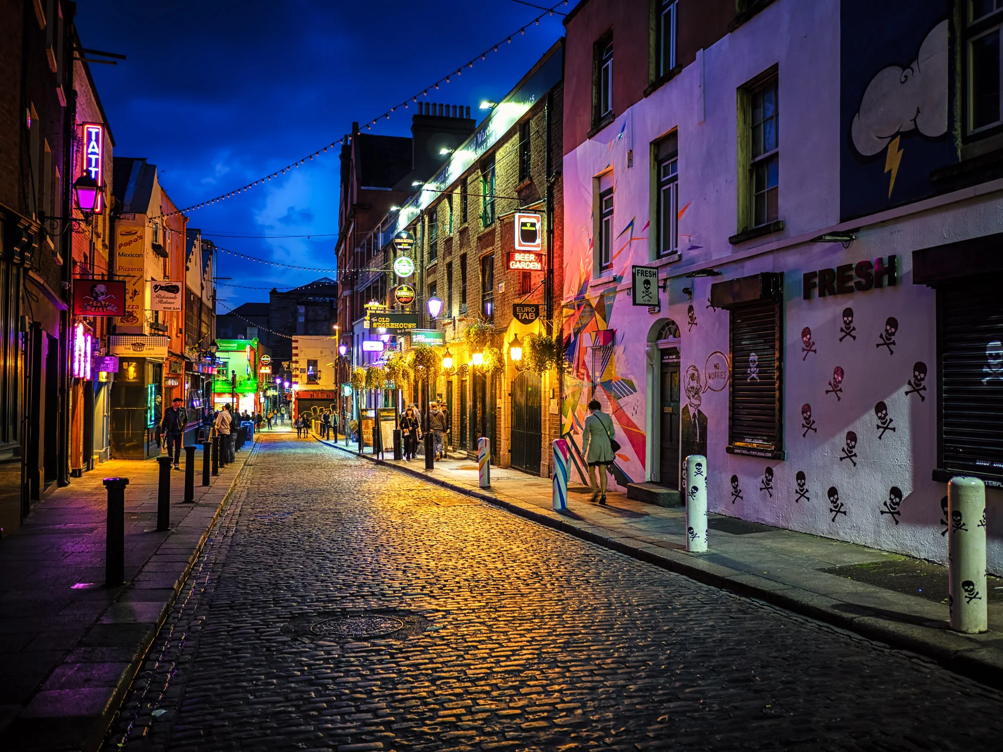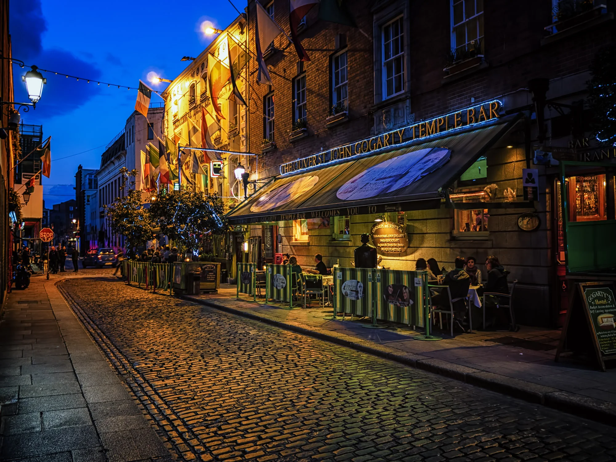 Temple Bar is normally crowded, but so beautiful during blue hour that it's worth going out anyways!