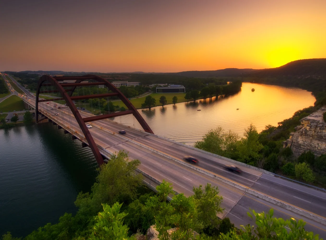 Between the dramatic setting up above the bridge, the commanding view of the river, and being able to watch the sun descend over the distant hills, it’s the best sunset view in Austin. Pack a picnic and enjoy the view! Bring a bottle of wine and your significant other. It's beautiful! I’ll see you up there sometime!