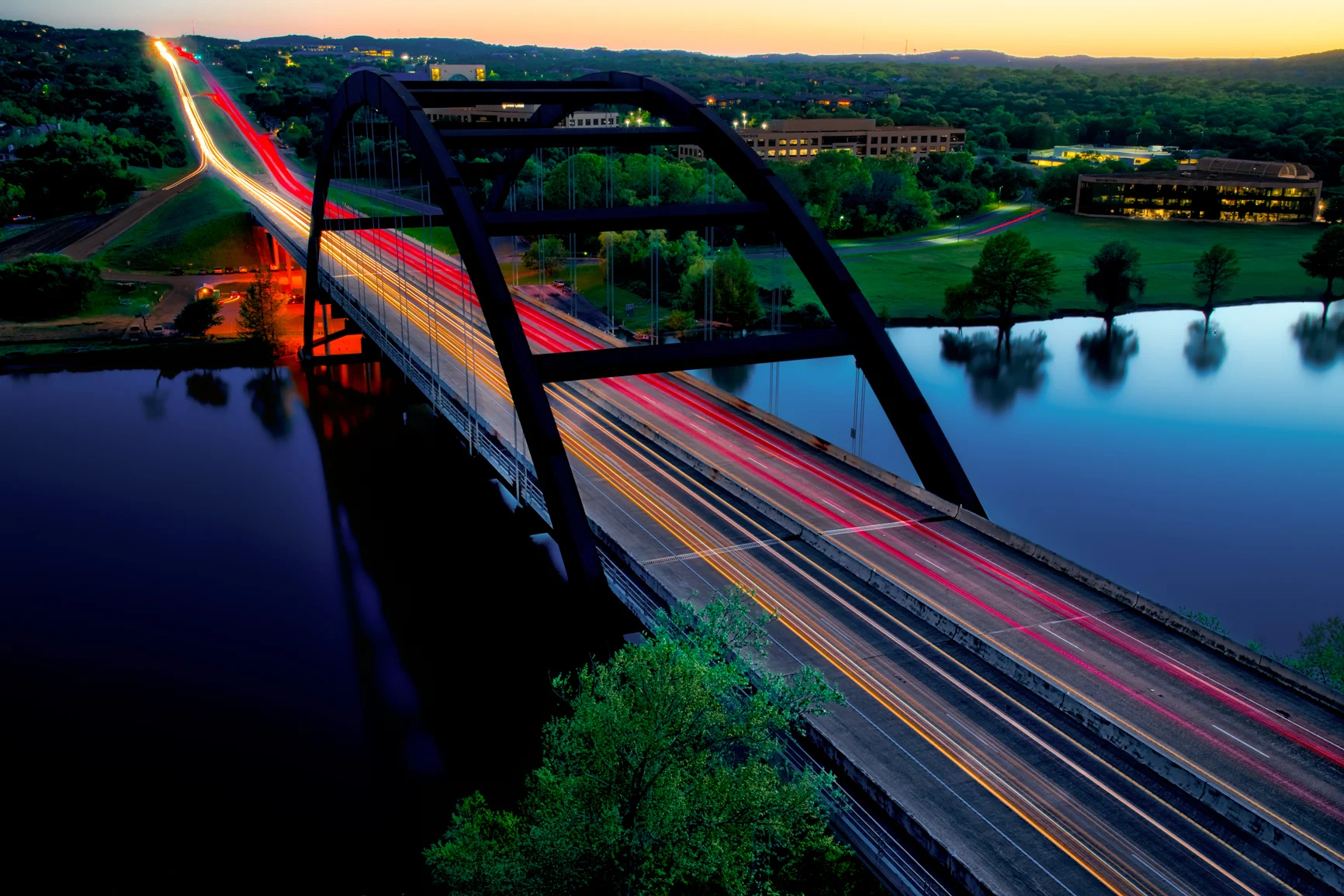 - The Pennybacker Bridge (aka The Loop 360 Bridge) is a gorgeous architectural structure, it gracefully arches over the river, and it looks great with the golden light of sunset shining on it.