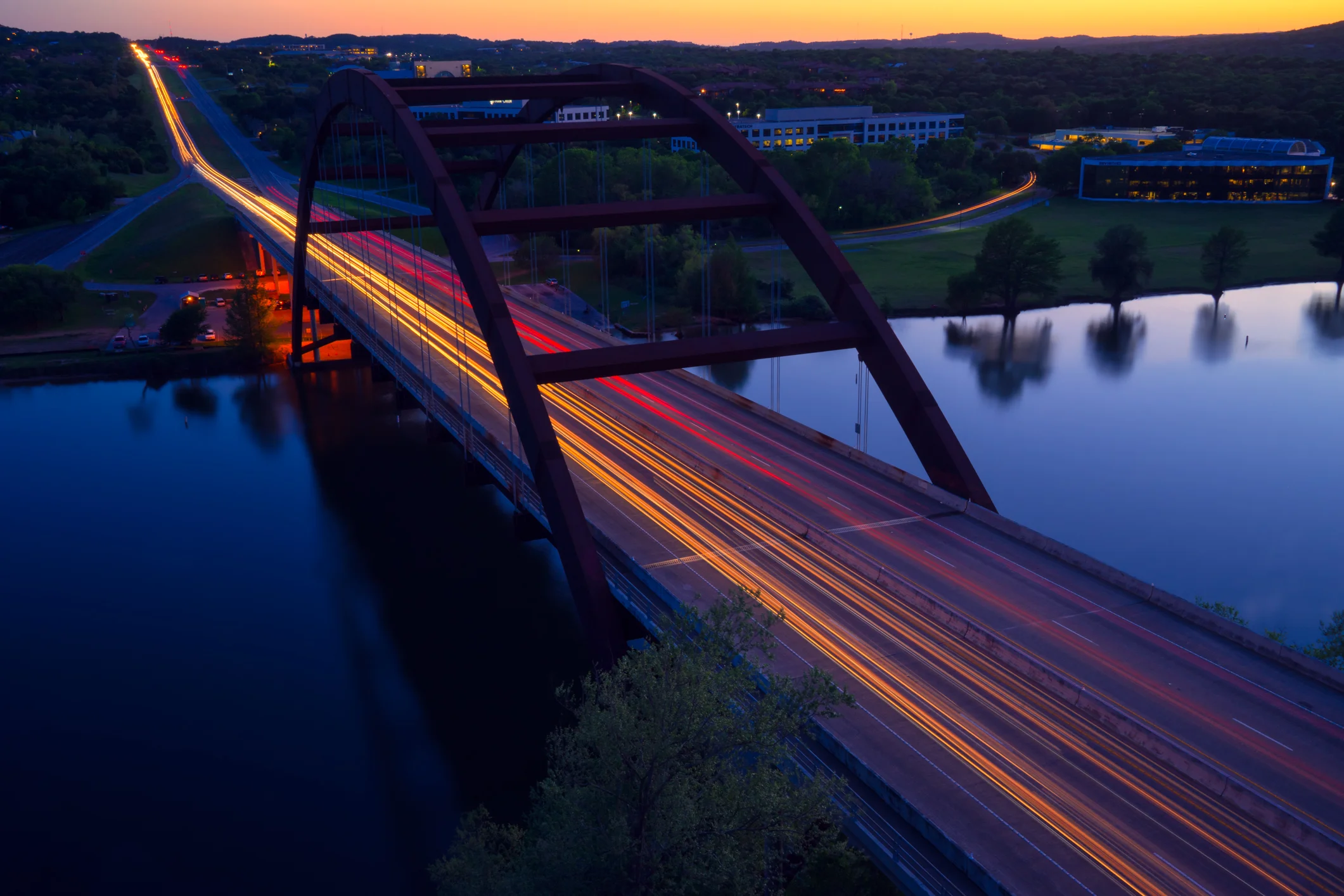 A long exposure of the Loop 360 Bridge in Austin taken at sunset...
