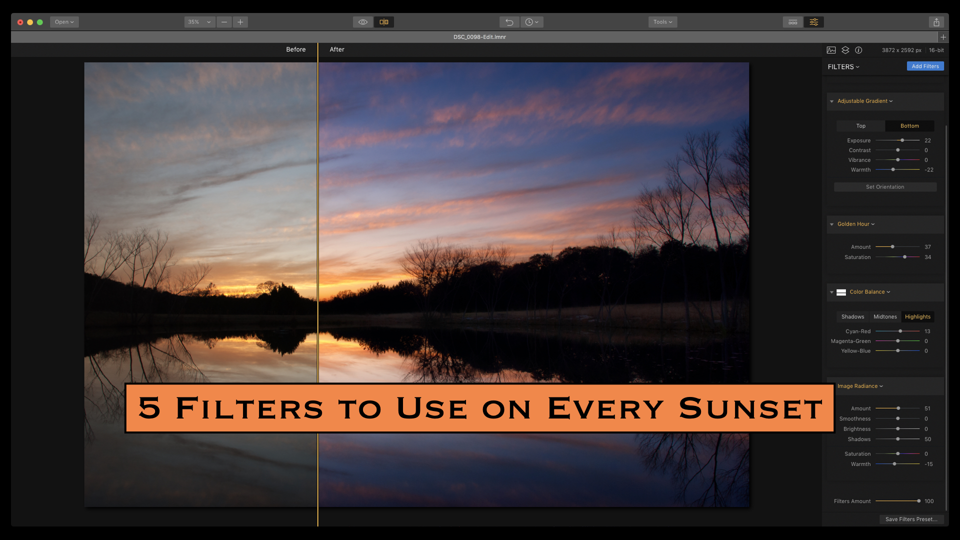 My latest Luminar video is all about editing a sunset photo, and I show 5 filters I use to bring these photos to life. Follow along!